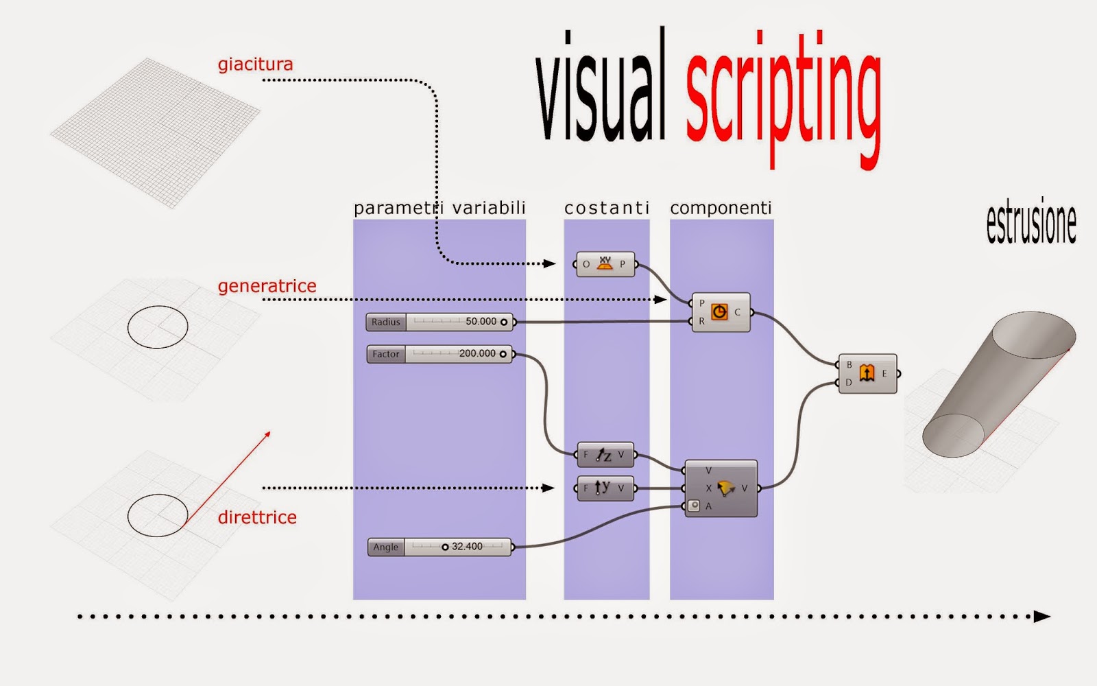 La progettazione parametrica è l’unica via per definire oggetti realmente responsivi, creando un chiaro collegamento di carattere dinamico fra eventi generatori (input), progetto (elaborazione digitale) e rappresentazione formale (output).